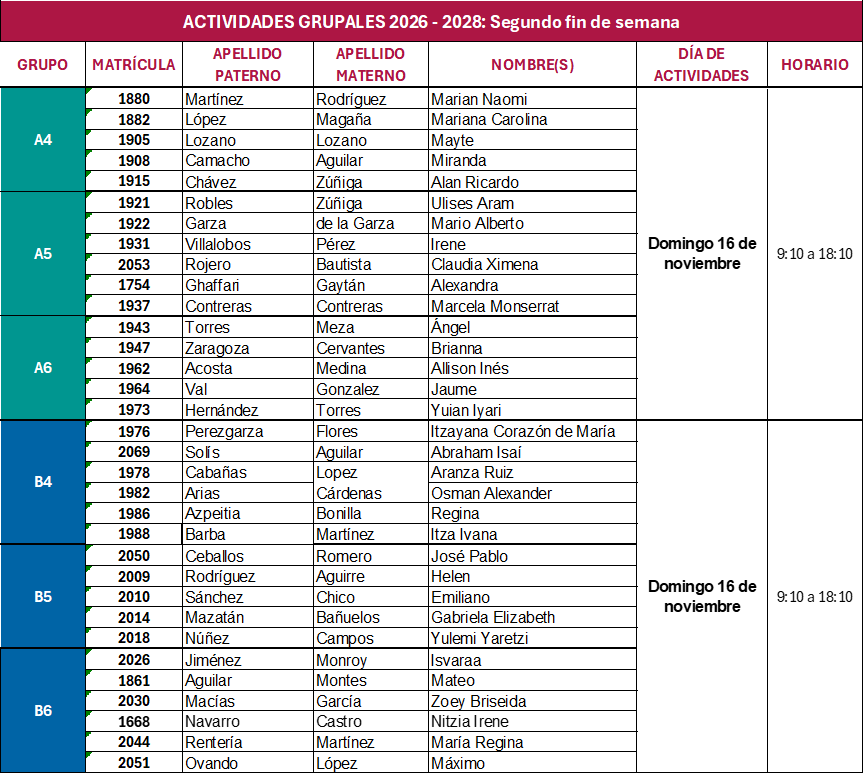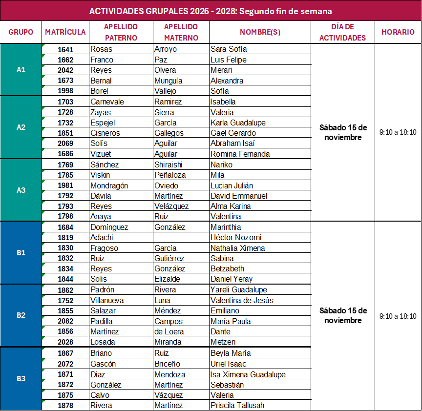 Revisa el grupo al que has sido asignadx para el segundo fin de semana de actividades. La lista se encuentra al final de este documento.